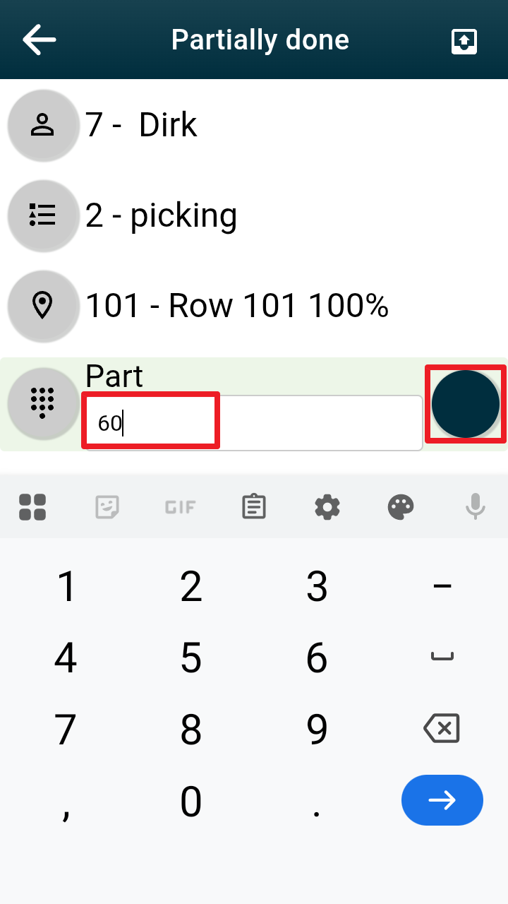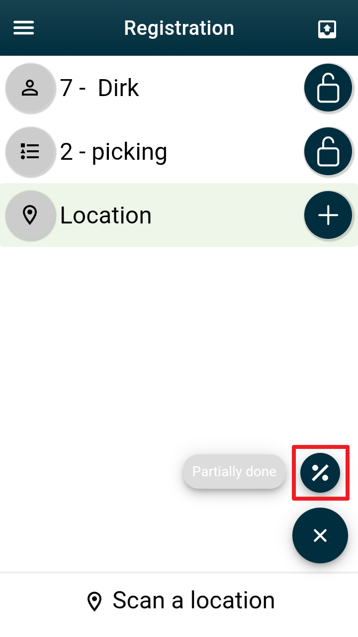 Or let the employee enter the " Partially done" manually, and here is how "Partially done" registrations can be entered, on both terminal or Scan-IT app ( on the phone):