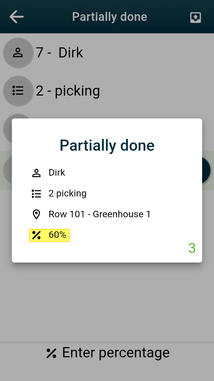 Making "Partially done" registrations is used in general with tasks based on path and the number of plants in this path, so the percentage of the path is important to figure out the performance of the employee.
