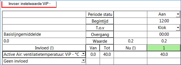Active Air controls the discharge temperature as standard with the position of the outside air damper. The outlet temperature appears to be 1 to 2 degrees lower than the set heating temperature, for sufficient ventilation. This is easy to realize with influence on the set value VIP in the custom control, see examples below.
