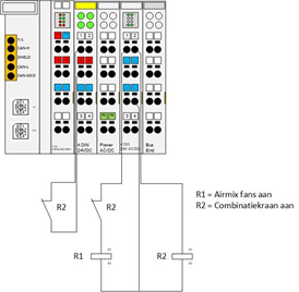 - The second function of the combination valve is to create a Din on the Datapoint, with which the Airmix fans are also switched off by software.